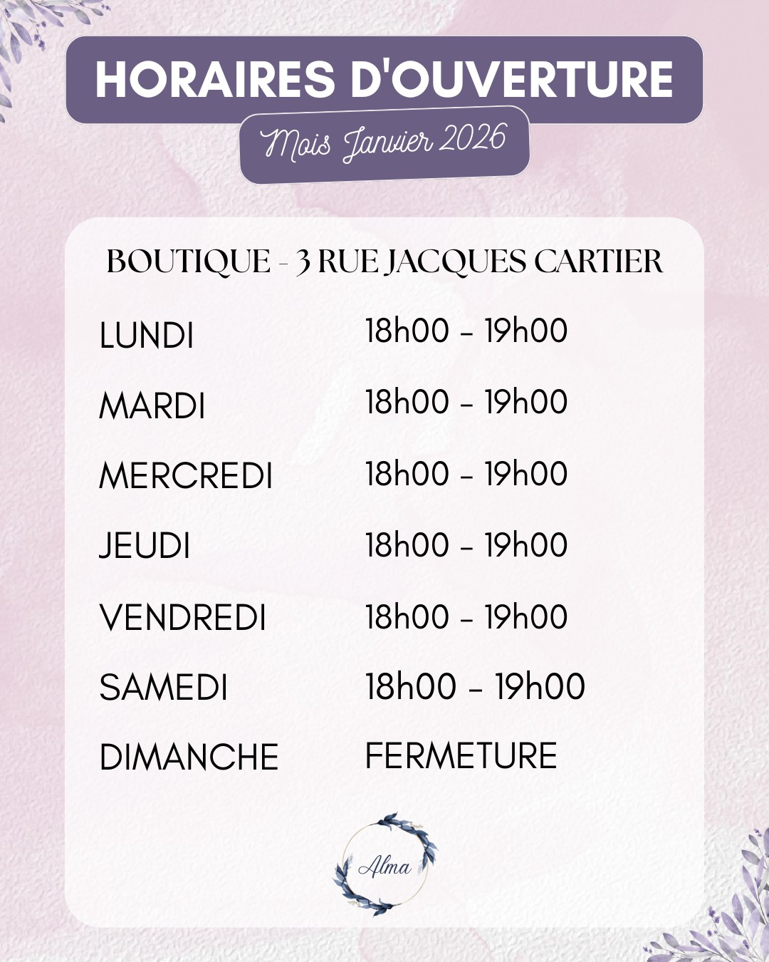 Nos horaires d'ouverture